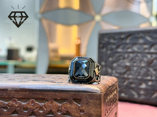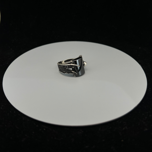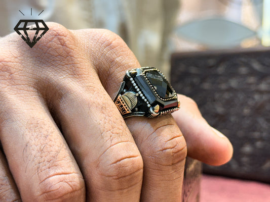 Black Aqeeq Double Sided Zulfikar Turkish Ring