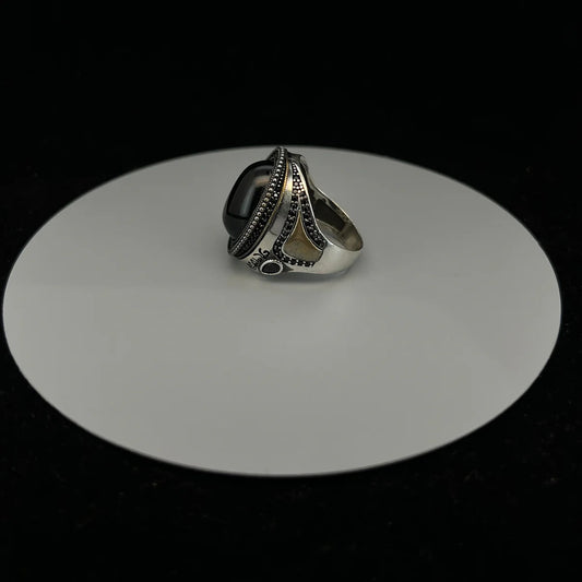 Round Black Aqeeq Turkish Ring