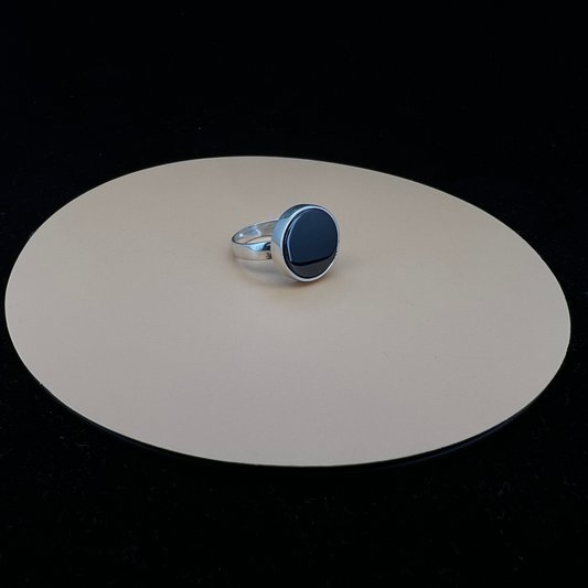 Round Black Aqeeq Simple Ring