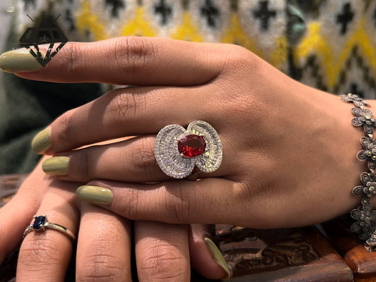 Pure 92.5 Italian Silver Ladies Ring with Red American Diamond + beautiful Ring