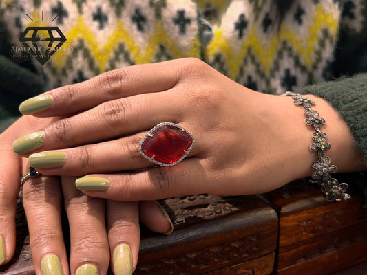 Pure 92.5 Italian Silver ladies Ring with Red Color Stone