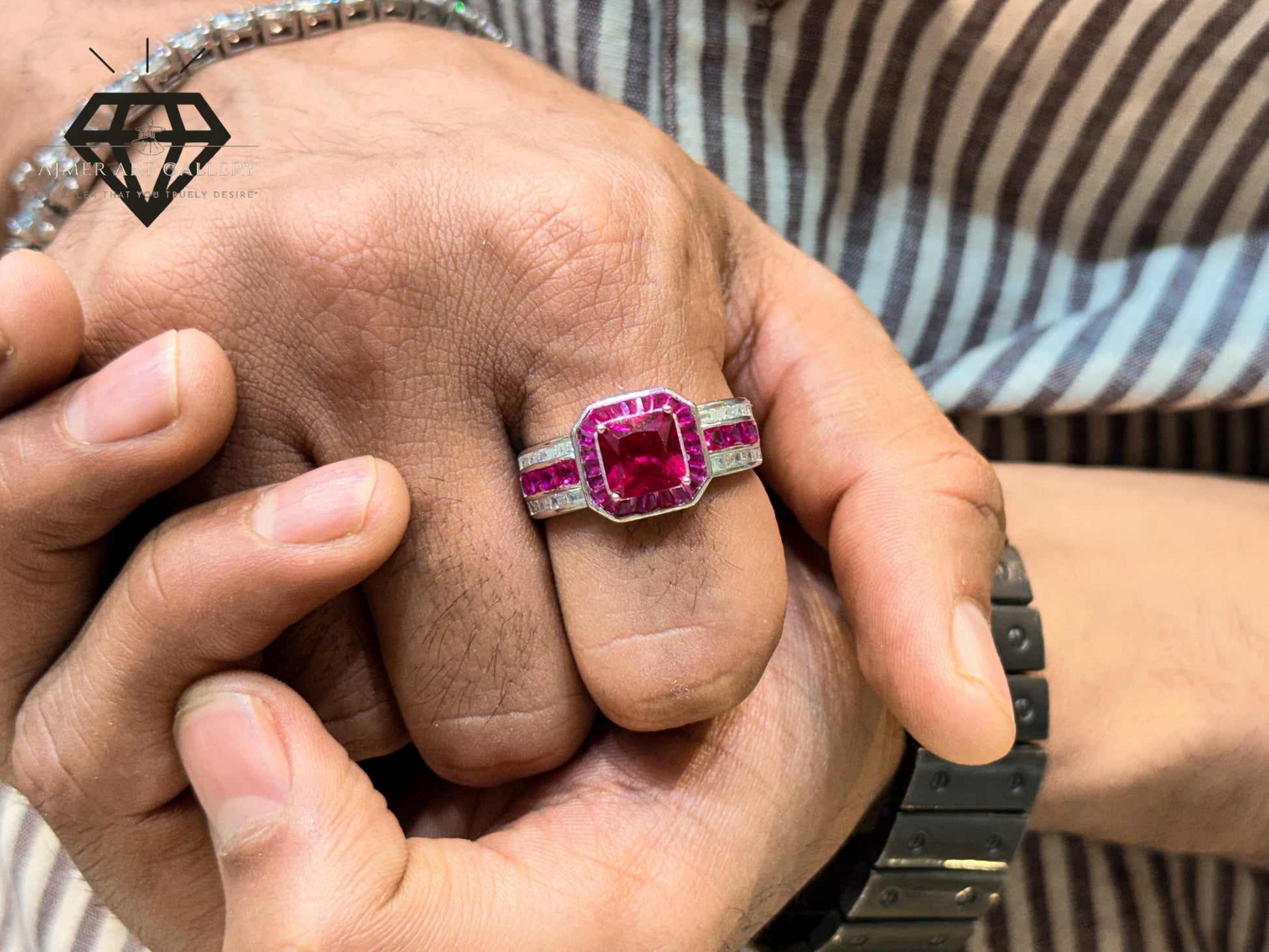 Beautiful pure 92.5 Italian Silver Ladies Ring with pink Color Stone Flower Design Ring